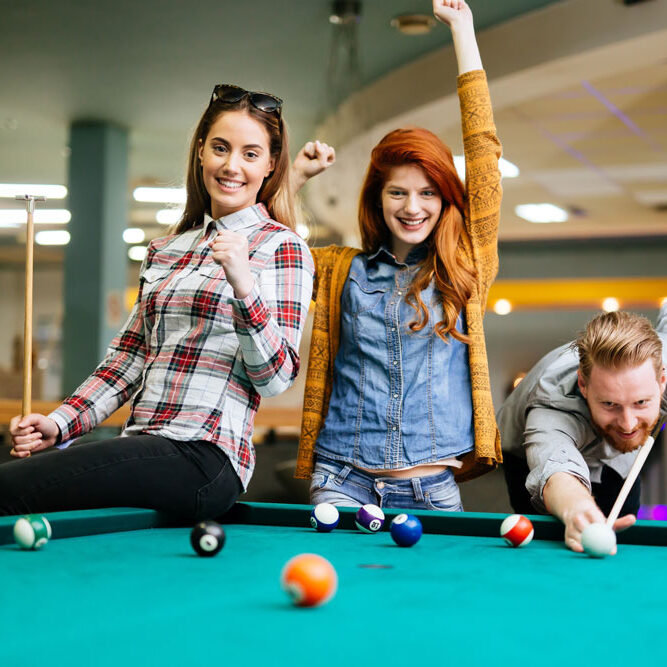 Inmitten der lebendigen und aufregenden Atmosphäre unserer Sportsbar entfaltet sich eine Welt, in der die Leidenschaft für Sport, die Eleganz des Billards und das gesellige Beisammensein auf einzigartige Weise verschmelzen. Hier, wo jeder Stoß auf dem grünen Filz, jeder begeisterte Jubel und jeder geteilte Moment eine eigene Geschichte erzählt, laden wir Sie ein, Teil einer unvergesslichen Erfahrung zu werden.